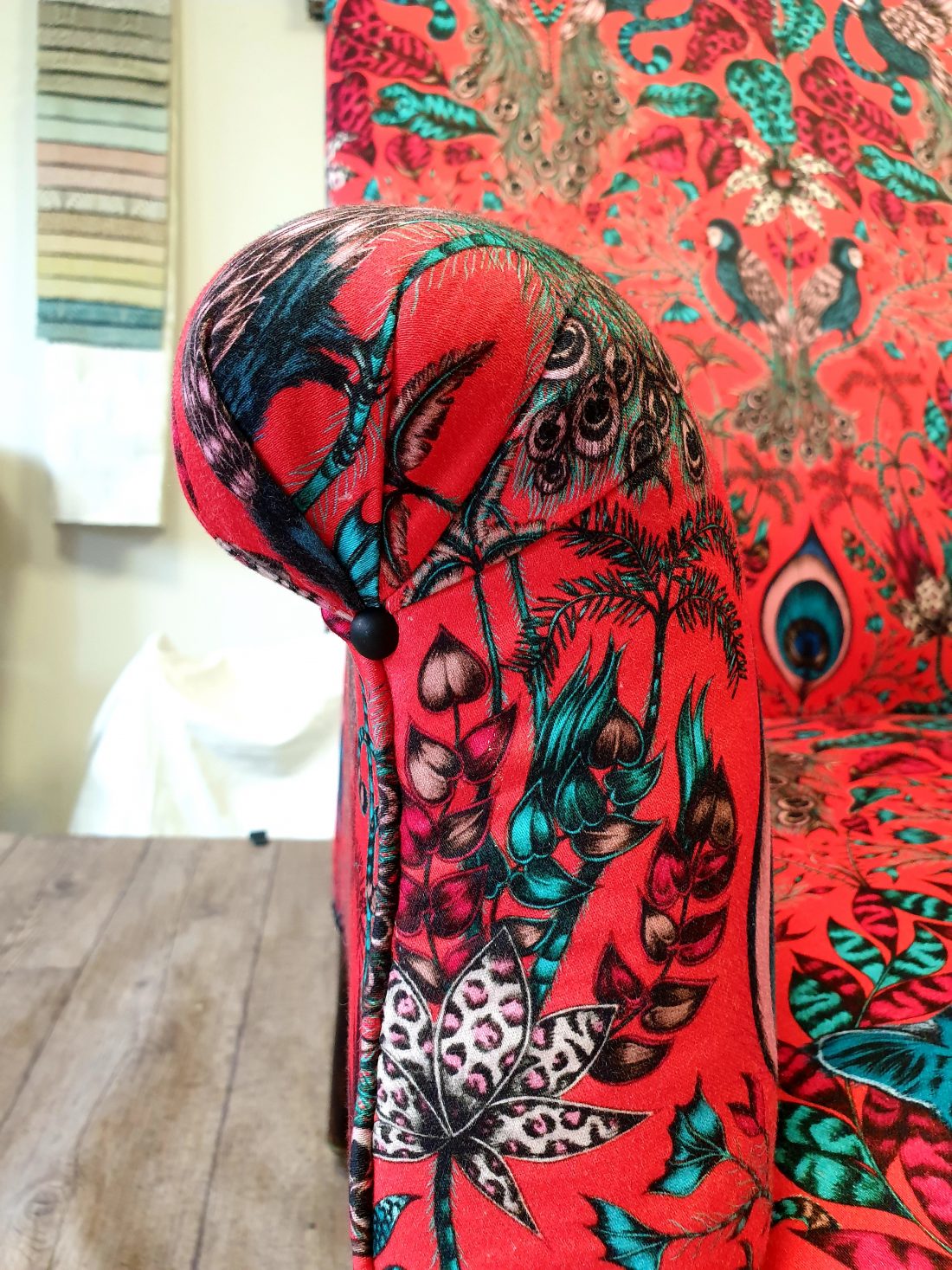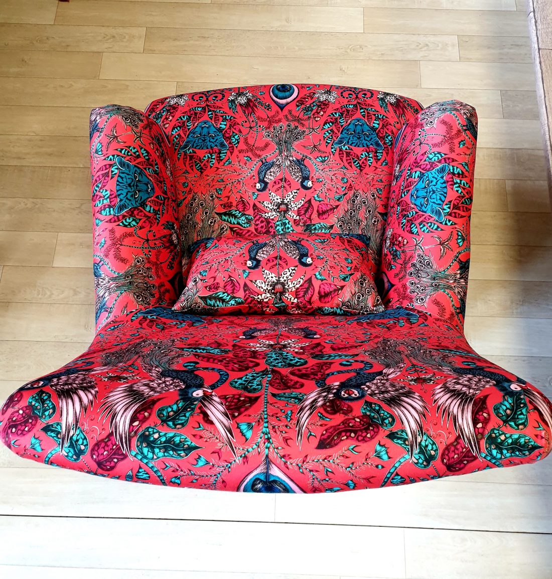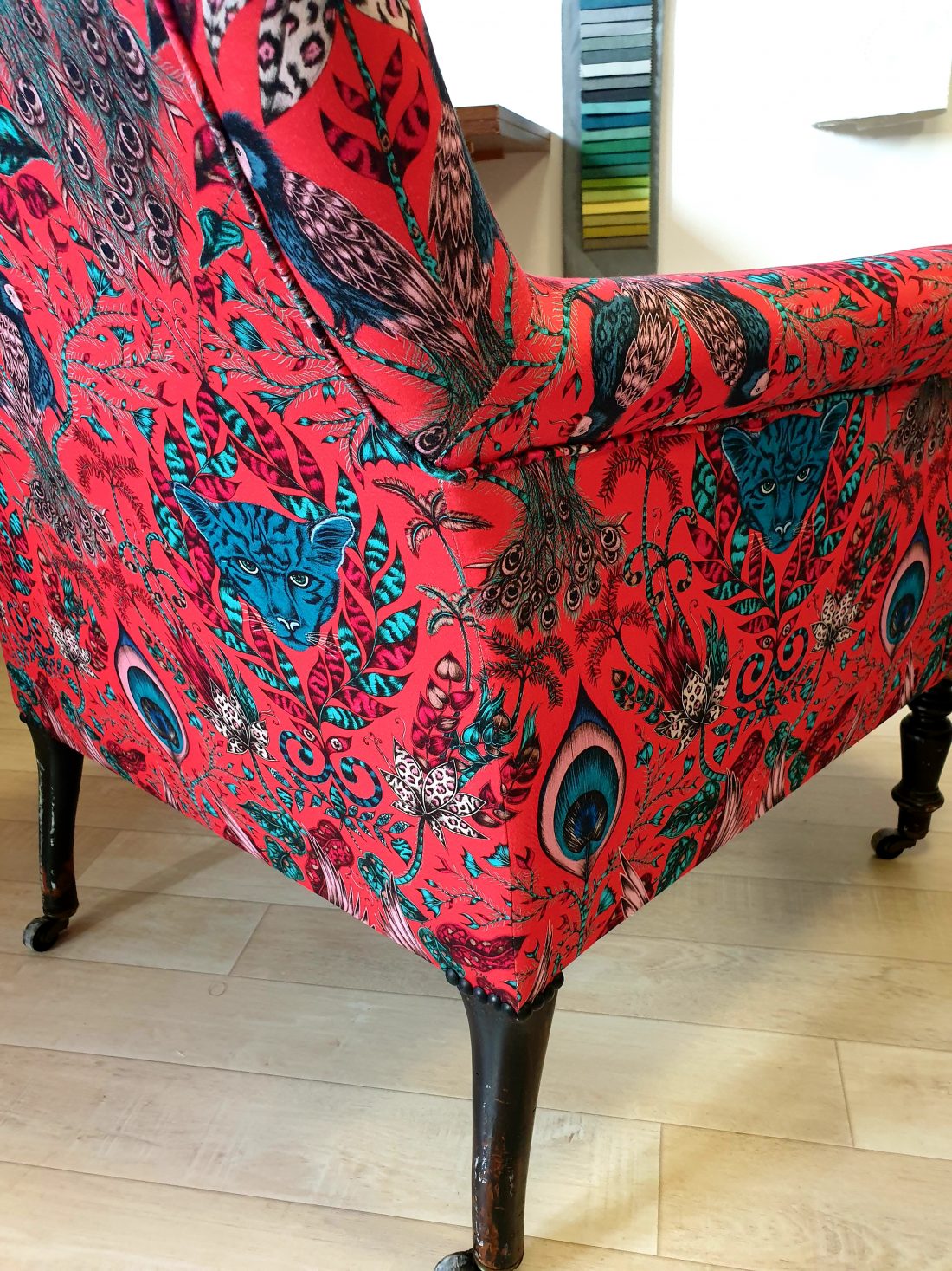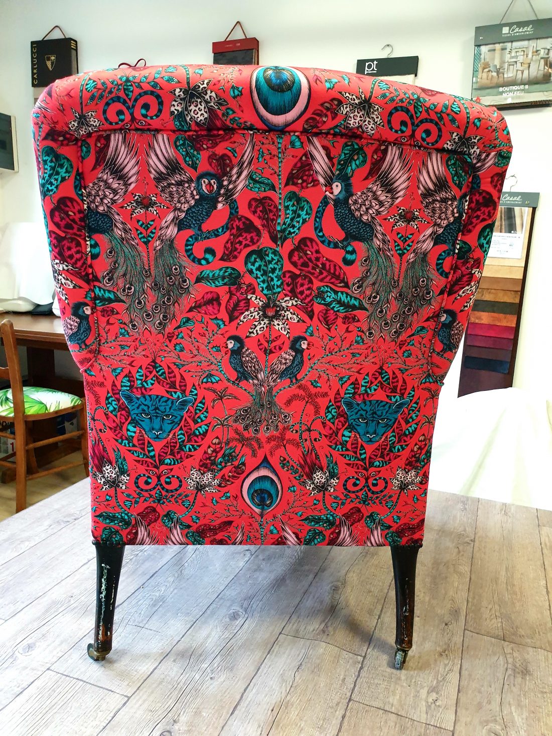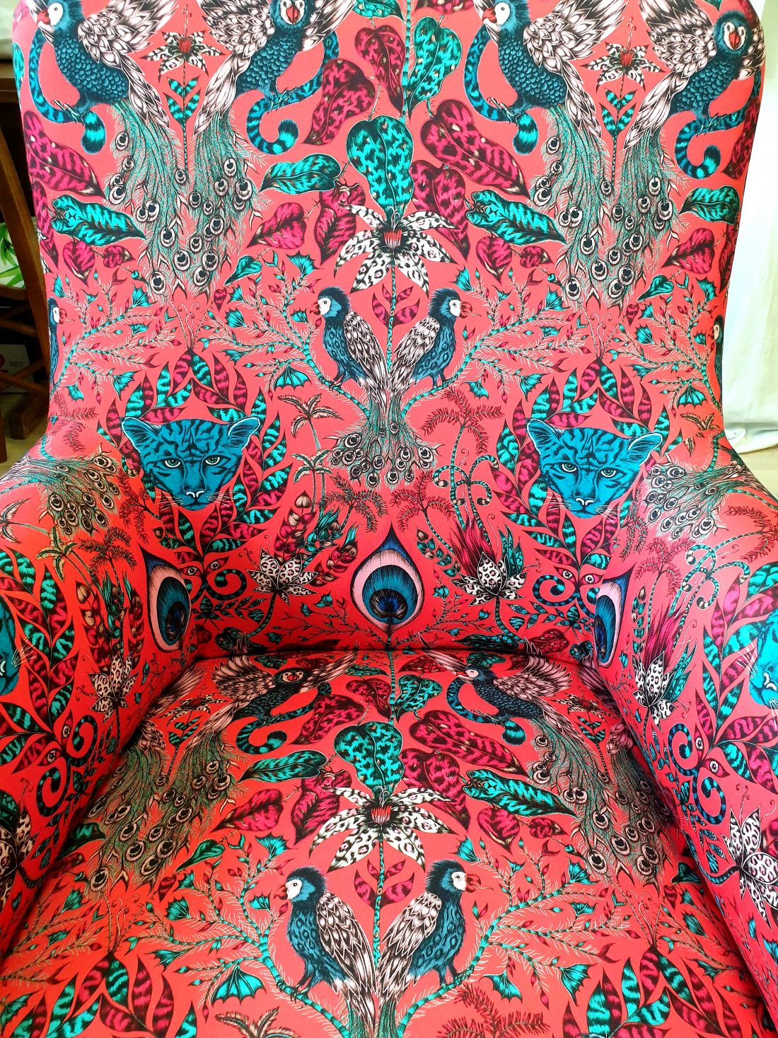 Couverture fauteuil anglais Napoléon III. Tissu Clark and Clark.