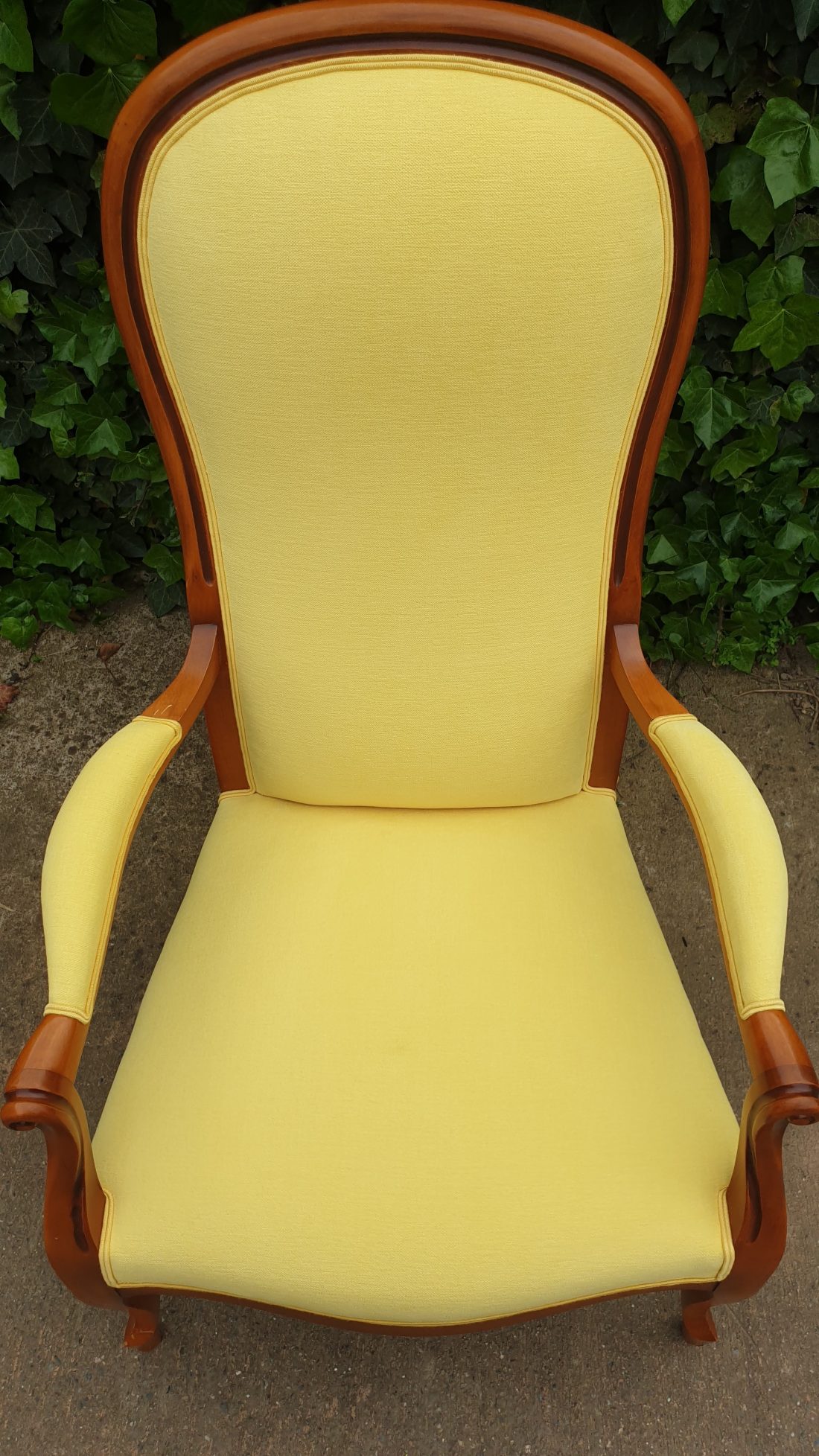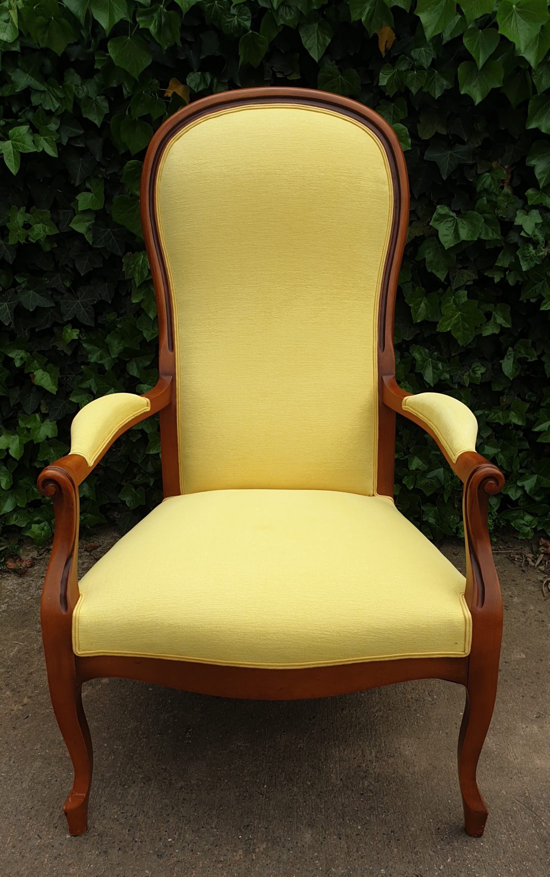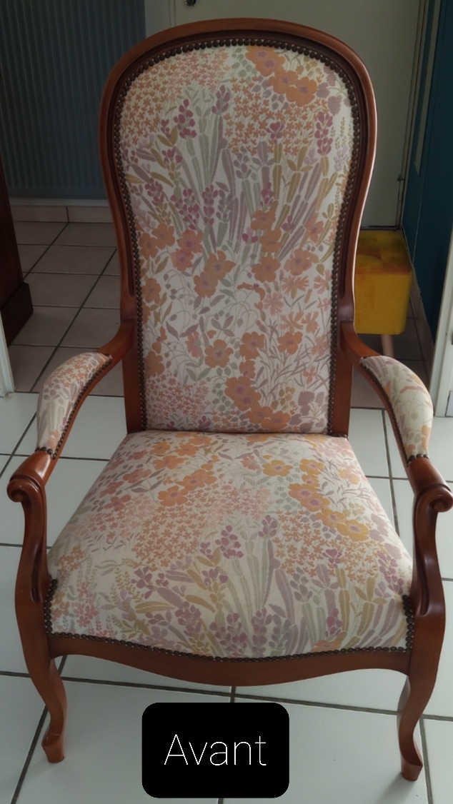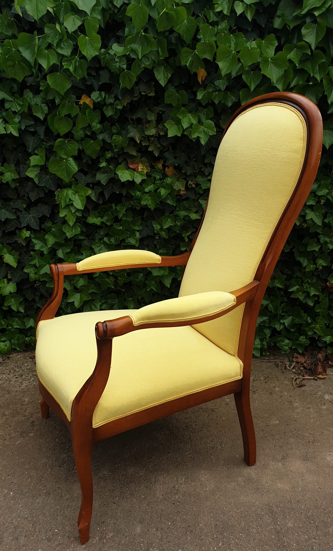Nouvelle couverture ensoleillée pour ce Voltaire. Tissu Casal.